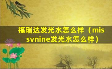 福瑞达发光水怎么样(missvnine发光水怎么样)