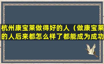 杭州康宝莱做得好的人(做康宝莱的人后来都怎么样了都能成为成功人吗)