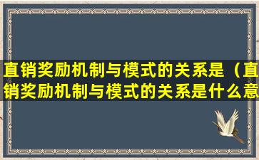 直销奖励机制与模式的关系是(直销奖励机制与模式的关系是什么意思)