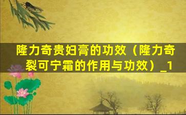 隆力奇贵妇膏的功效(隆力奇裂可宁霜的作用与功效)