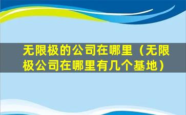 无限极的公司在哪里(无限极公司在哪里有几个基地)