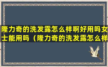 2、隆力奇的洗发露怎么样啊好用吗女士能用吗知乎