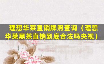 理想华莱直销牌照查询(理想华莱黑茶直销到底合法吗央视)