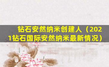 钻石安然纳米创建人(2021钻石国际安然纳米最新情况)