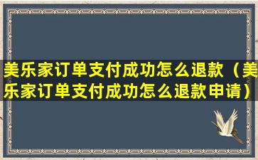 美乐家订单支付成功怎么退款(美乐家订单支付成功怎么退款申请)