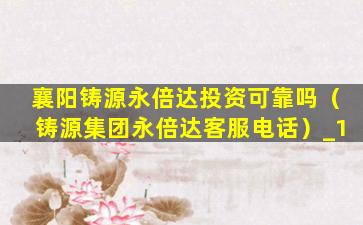 1、襄阳铸源永倍达投资可靠吗