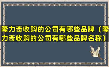 隆力奇收购的公司有哪些品牌(隆力奇收购的公司有哪些品牌名称)