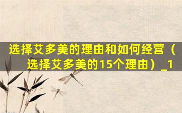 选择艾多美的理由和如何经营(选择艾多美的15个理由)