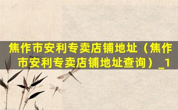 焦作市安利专卖店铺地址(焦作市安利专卖店铺地址查询)