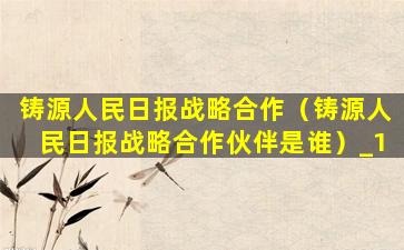 铸源人民日报战略合作(铸源人民日报战略合作伙伴是谁)