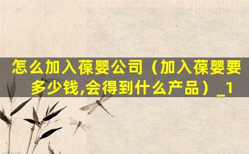 怎么加入葆婴公司(加入葆婴要多少钱,会得到什么产品)