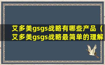 艾多美gsgs战略有哪些产品(艾多美gsgs战略最简单的理解)