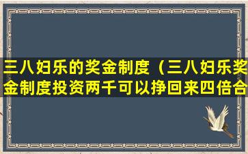 三八妇乐的奖金制度(三八妇乐奖金制度投资两千可以挣回来四倍合法吗)