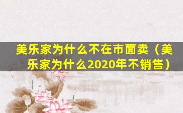 美乐家为什么不在市面卖(美乐家为什么2020年不销售)