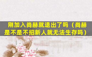 刚加入尚赫就退出了吗(尚赫是不是不招新人就无法生存吗)