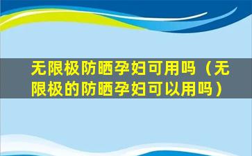 无限极防晒孕妇可用吗(无限极的防晒孕妇可以用吗)