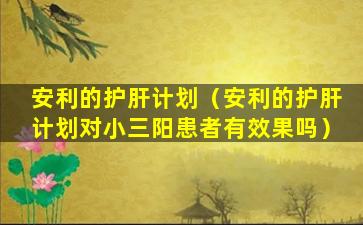 安利的护肝计划(安利的护肝计划对小三阳患者有效果吗)