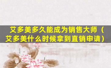 艾多美多久能成为销售大师(艾多美什么时候拿到直销申请)