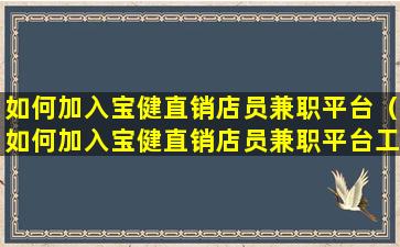 如何加入宝健直销店员兼职平台(如何加入宝健直销店员兼职平台工作)