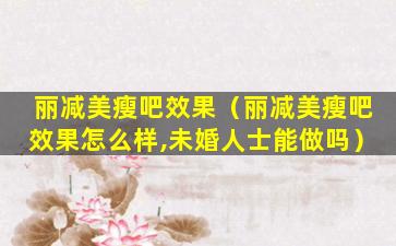 2、丽减美瘦吧效果怎么样,未婚人士能做吗