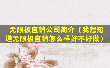 无限极直销公司简介(我想知道无限极直销怎么样 好不好做)
