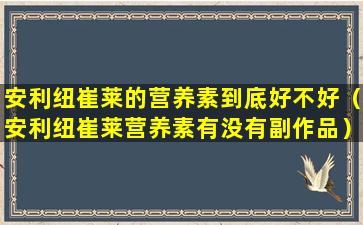 安利纽崔莱的营养素到底好不好(安利纽崔莱营养素有没有副作品)