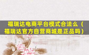 福瑞达电商平台模式合法么(福瑞达官方自营商城是正品吗)
