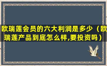欧瑞莲会员的六大利润是多少(欧瑞莲产品到底怎么样,要投资吗)