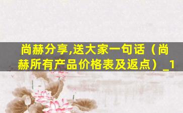 尚赫分享,送大家一句话(尚赫所有产品价格表及返点)