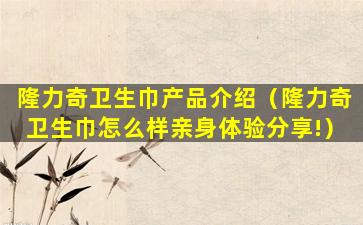隆力奇卫生巾产品介绍(隆力奇卫生巾怎么样亲身体验分享!)