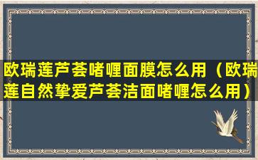 欧瑞莲芦荟啫喱面膜怎么用(欧瑞莲自然挚爱芦荟洁面啫喱怎么用)