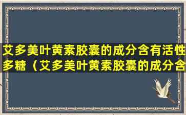艾多美叶黄素胶囊的成分含有活性多糖(艾多美叶黄素胶囊的成分含有活性多糖)