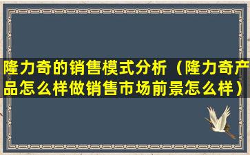 隆力奇的销售模式分析(隆力奇产品怎么样做销售市场前景怎么样)