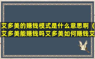 艾多美的赚钱模式是什么意思啊(艾多美能赚钱吗艾多美如何赚钱艾多美赚钱容易吗)