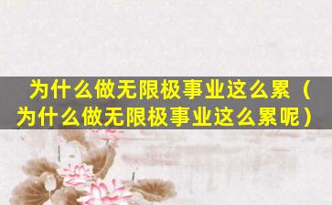 为什么做无限极事业这么累(为什么做无限极事业这么累呢)