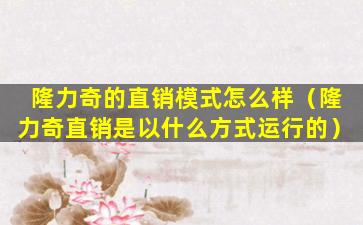 2、隆力奇直销是以什么方式运行的