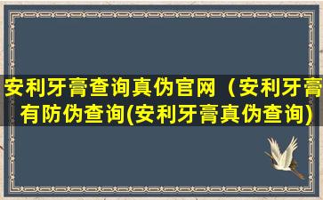安利牙膏查询真伪官网(安利牙膏有防伪查询(安利牙膏真伪查询))