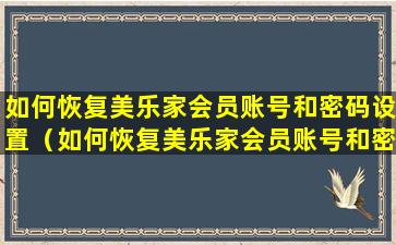 如何恢复美乐家会员账号和密码设置(如何恢复美乐家会员账号和密码设置方法)