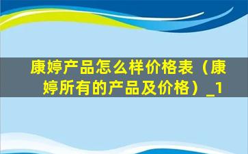 康婷产品怎么样价格表(康婷所有的产品及价格)