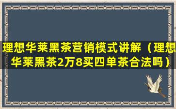 理想华莱黑茶营销模式讲解(理想华莱黑茶2万8买四单茶合法吗)