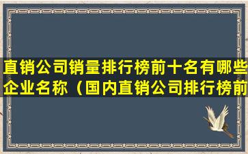 直销公司销量排行榜前十名有哪些企业名称(国内直销公司排行榜前十名)
