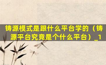 铸源模式是跟什么平台学的(铸源平台究竟是个什么平台)