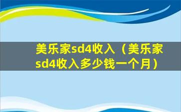 美乐家sd4收入(美乐家sd4收入多少钱一个月)