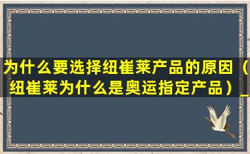 为什么要选择纽崔莱产品的原因(纽崔莱为什么是奥运指定产品)