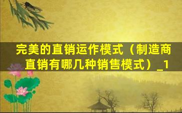 完美的直销运作模式(制造商直销有哪几种销售模式)