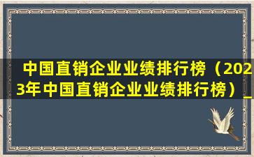 中国直销企业业绩排行榜(2023年中国直销企业业绩排行榜)