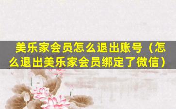 美乐家会员怎么退出账号(怎么退出美乐家会员 绑定了微信)