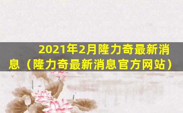 2021年2月隆力奇最新消息(隆力奇最新消息官方网站)