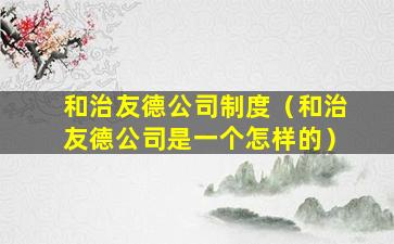 和治友德公司秉承“以人为本,以德治企”的经营理念,制定了完善的公司制度,以规范员工行为,促进企业健康发展。