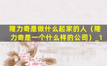 隆力奇是做什么起家的人(隆力奇是一个什么样的公司)